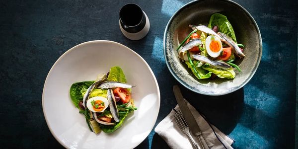 Crisp leaves, olives, beans and egg with seared sashimi-grade tuna; bright Dijon–lemon vinaigrette